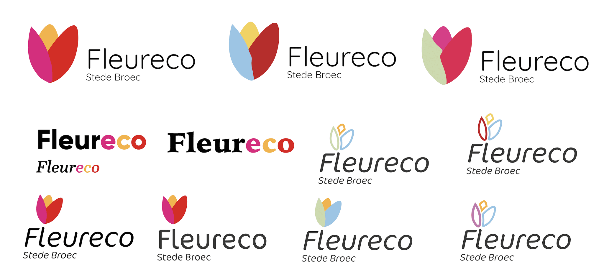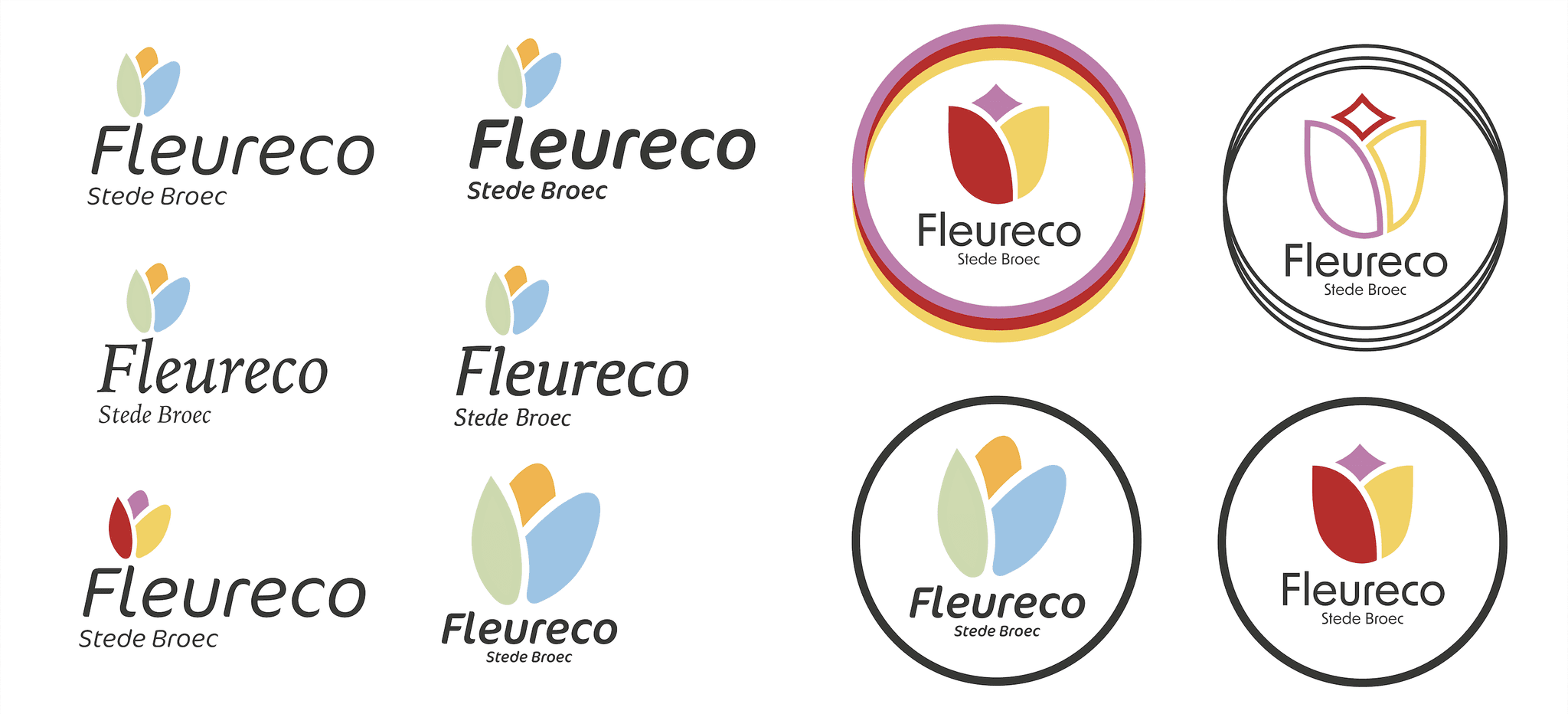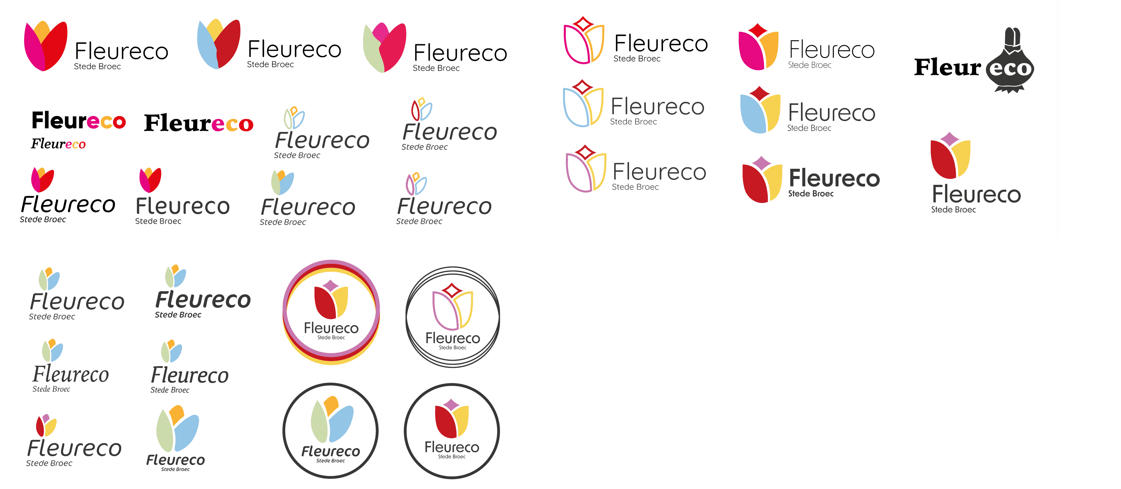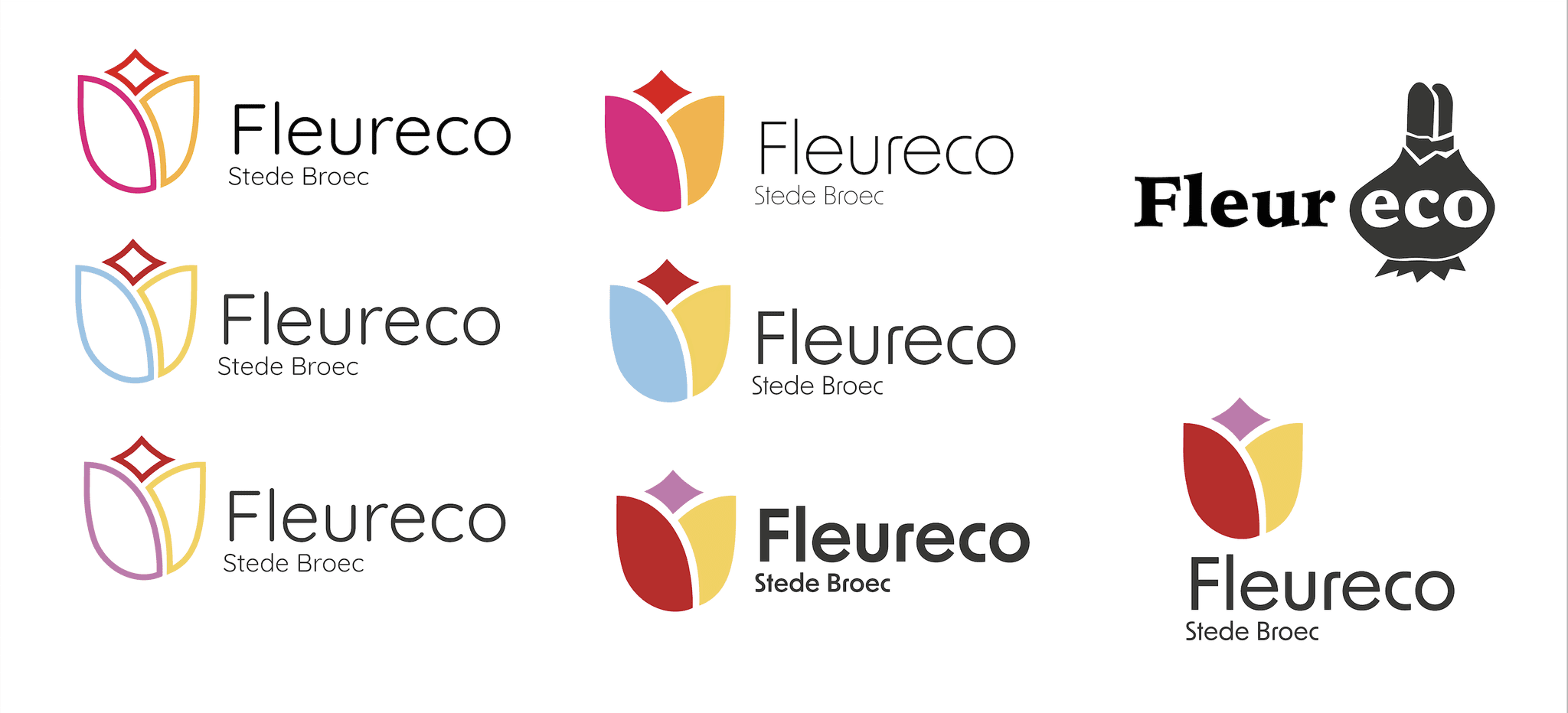 Verschillende schetsen voor het nieuwe logo van Fleureco. Een bedrijf wat zich bezich houdt met het verwerken van tulpen bollen.