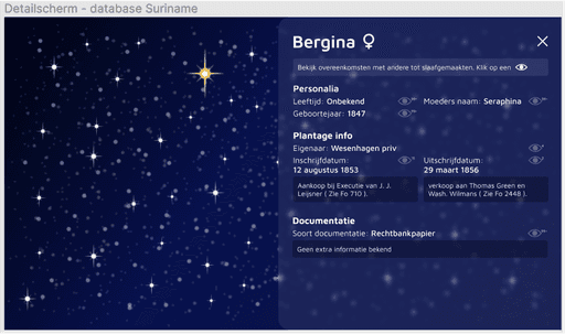 Het concept werkt toont de connectie van alle tot slaaf gemaakte en de missende informatie over deze mensen.