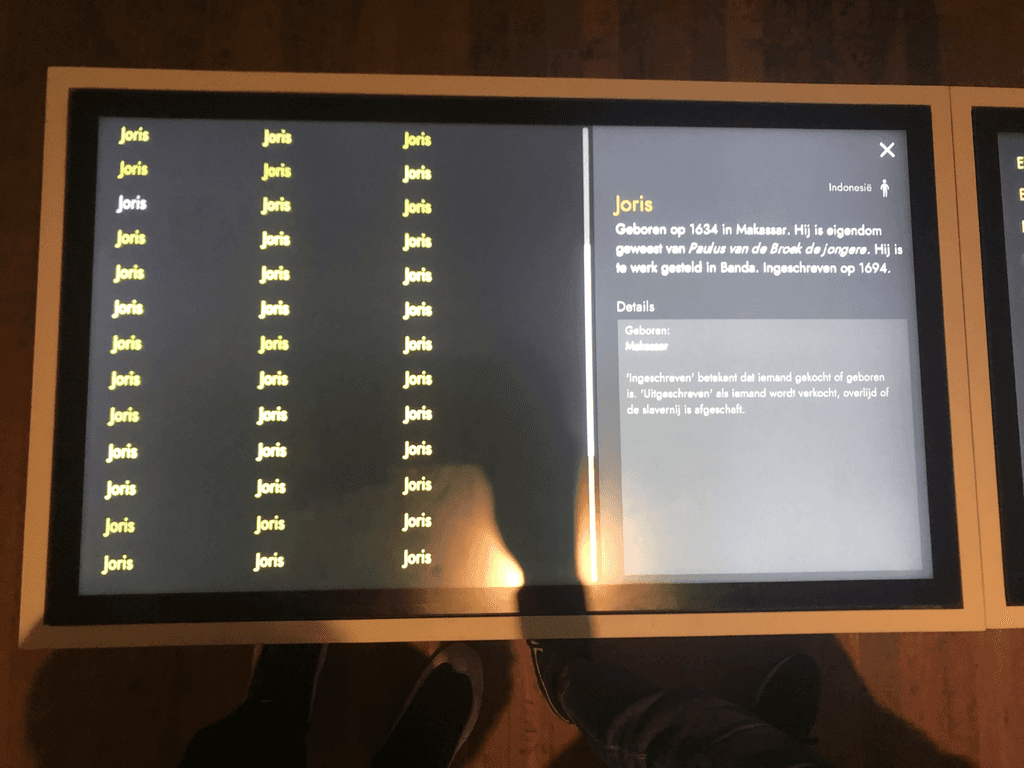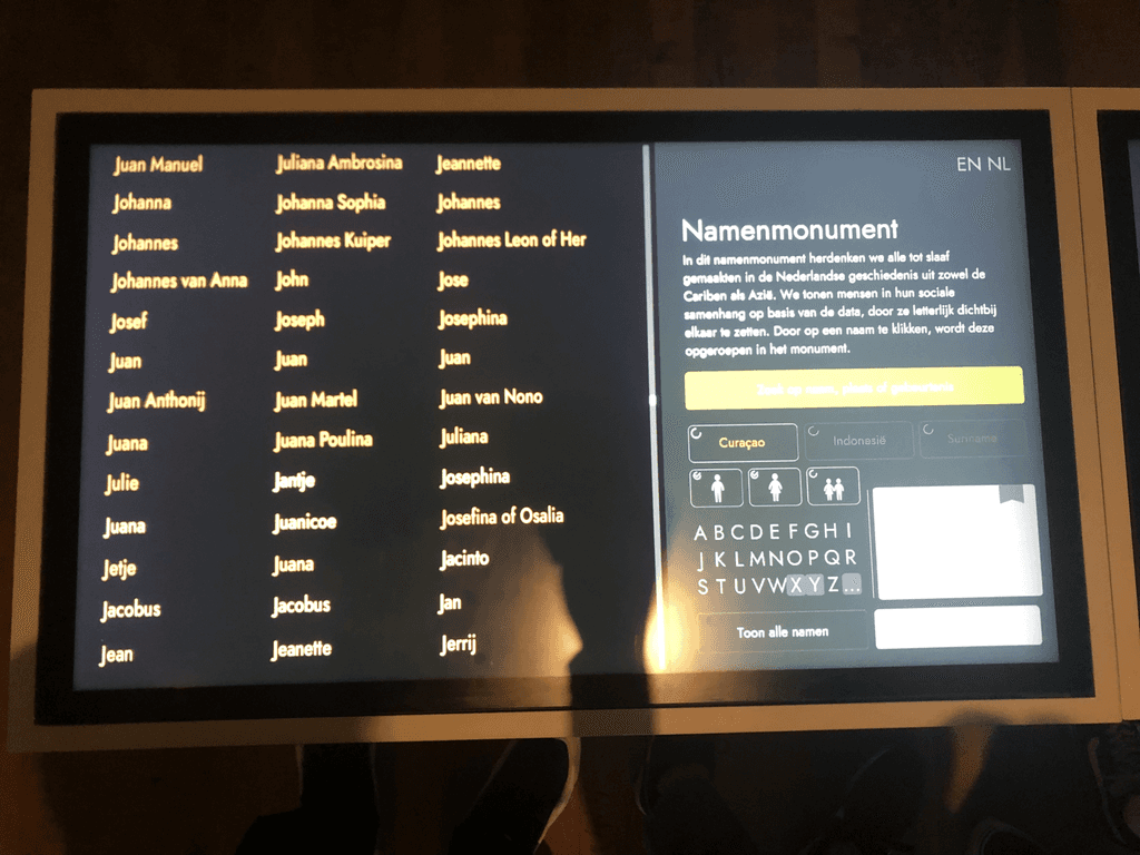 Tijdens mijn Minor Visual Interface design heb ik samen met andere studenten gewerkt aan de conceptualisering van het "Namen monument". Deze installatie was onderdeel van de tentoonstelling "Onze koloniale erfenis" die te zien was in het tropenmuseum.