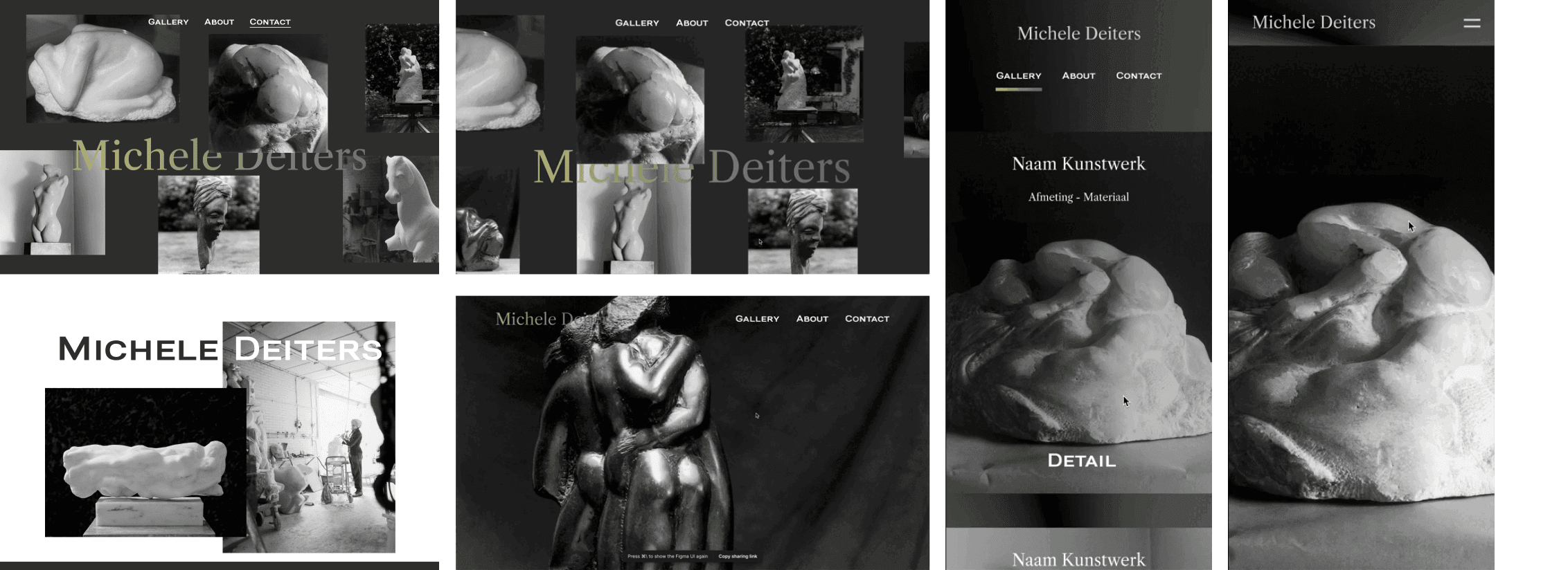 Een aantal schetsen en ontwerpen van de portfolio website voor kunstenares Michele Deiters. De gebruiksvriendelijkheid op mobiel is ook belangrijk geweest voor de klant. Om die reden zijn er ook concepten uitgewerkt op mobiel formaat.