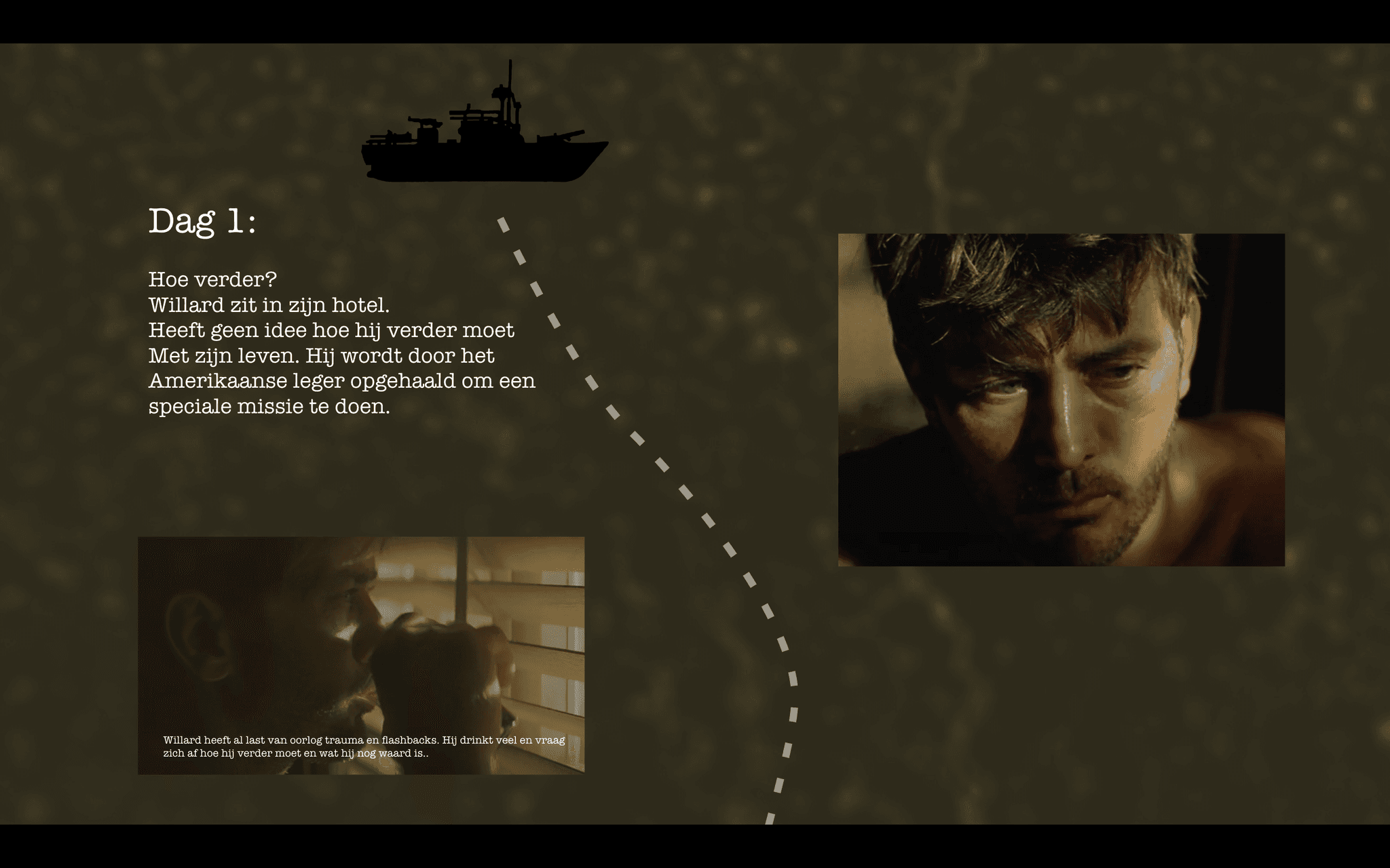 Het concept is vooral om mijn ervaring van de film de visualiseren en uit te beelden hoe ik denk dat de onderliggende verhalen worden verteld.